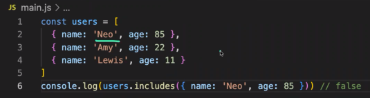 참조형은 모양이 똑같다고 해서 꼭 일치하는건 아님.- 예시로는 원시형 / 참조형 데이터는 데이터를 저장할 때 서로 slot?을 쓰는 방법이 다름.