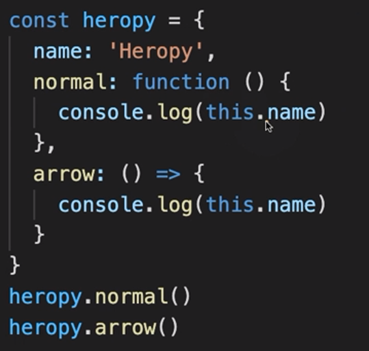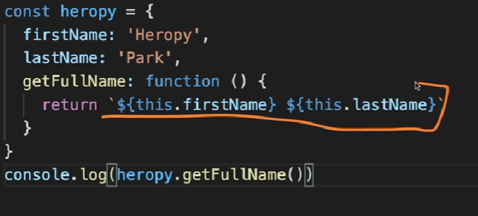 이름heropy을 다시 쓰는 것 대신 this를 쓰는 경우 이후 변수 이름이 변경되어도 그대로 둬도 괜찮음.
