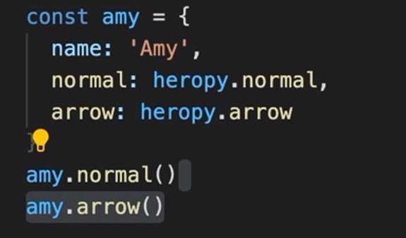 1) 일반 함수amy.normal()은Amy가 반환되고(해당 호출에서 자신이 내용으로 속해있는this(=amy 함수)와 맞닿아 있음)