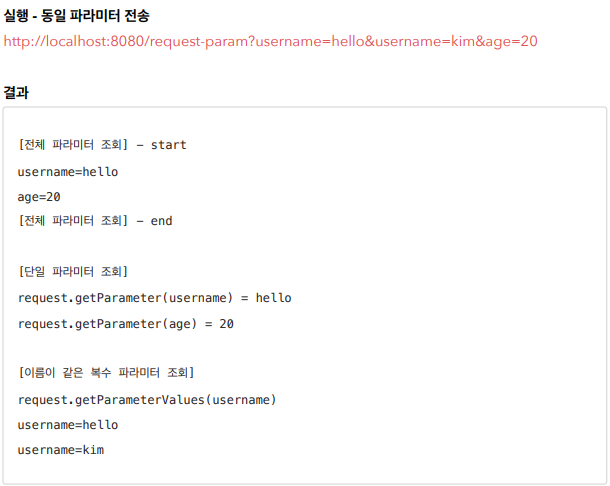 username=hellow&username=kim과 같이 파라미터 이름은 하나인데 , 값이 중복이면 어떻게 될까?