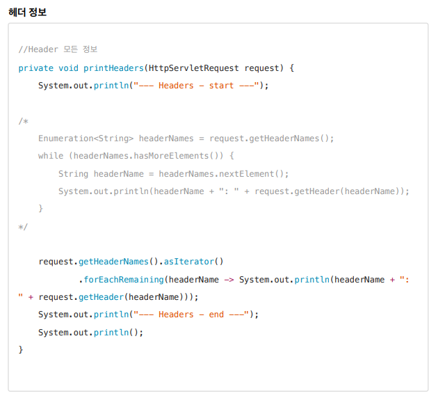 지금까지 HttpServletRequest를 통해서 HTTP 메시지의 start-line, header 정보 조회 방법을