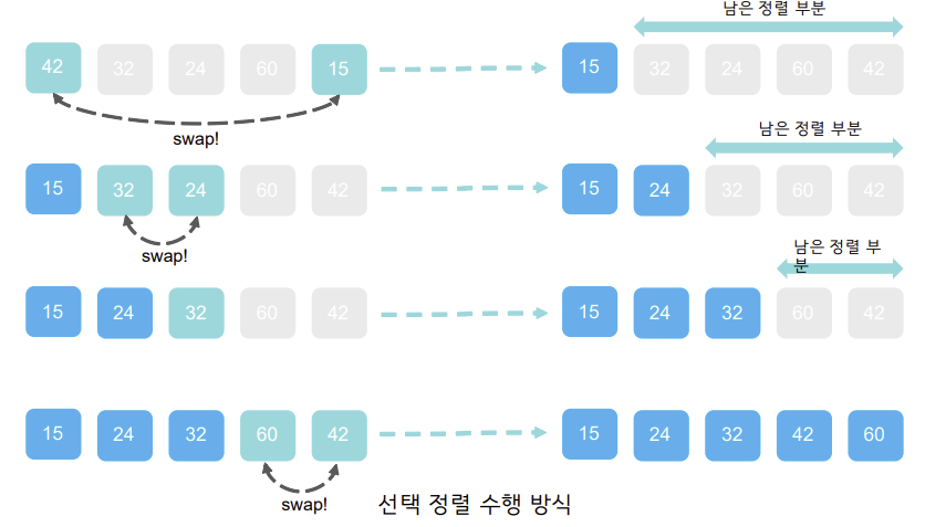 <!-- 선택 된 데이터(최소 값)가 들어가야할 인덱스로 교환 -->