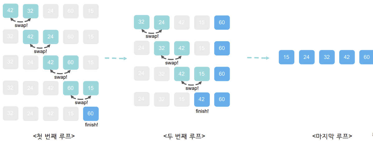 <!-- 교환이 한 번도 발생하지 않으면 정렬 완료 -->