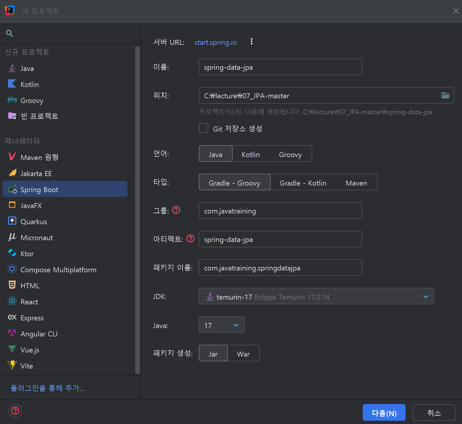 지금까지 정리한 JPA 관련 내용들은 Hibernate 기반의 순수 JPA 환경에서 직접 구현한 방식