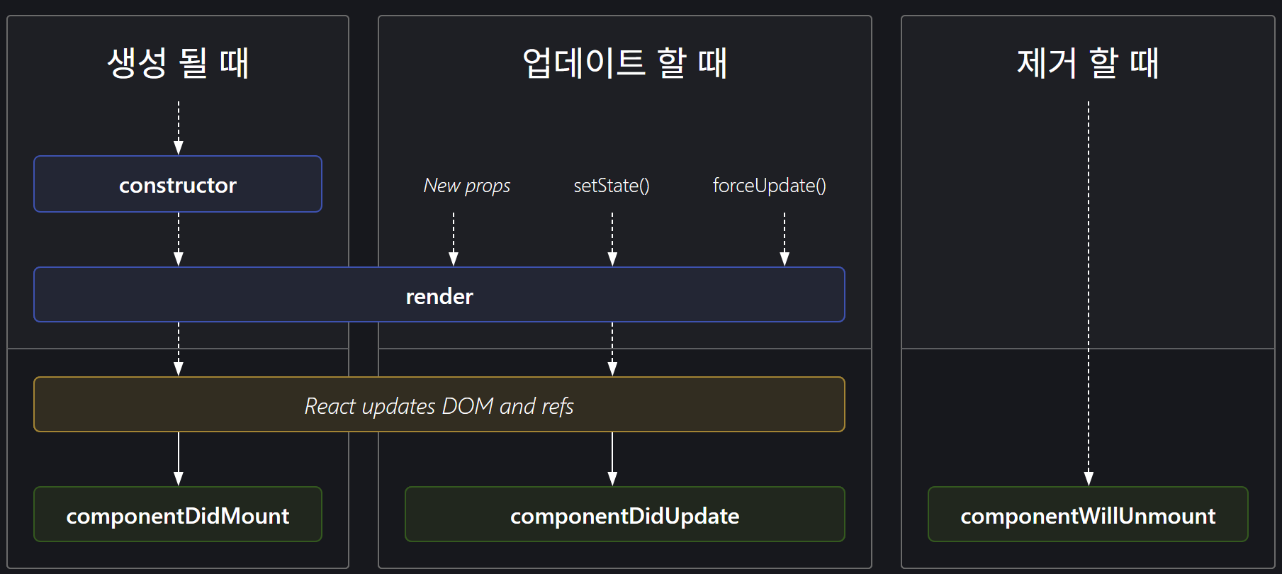 컴포넌트가 DOM에서 null로 초기화될 때 호출되는 생명주기