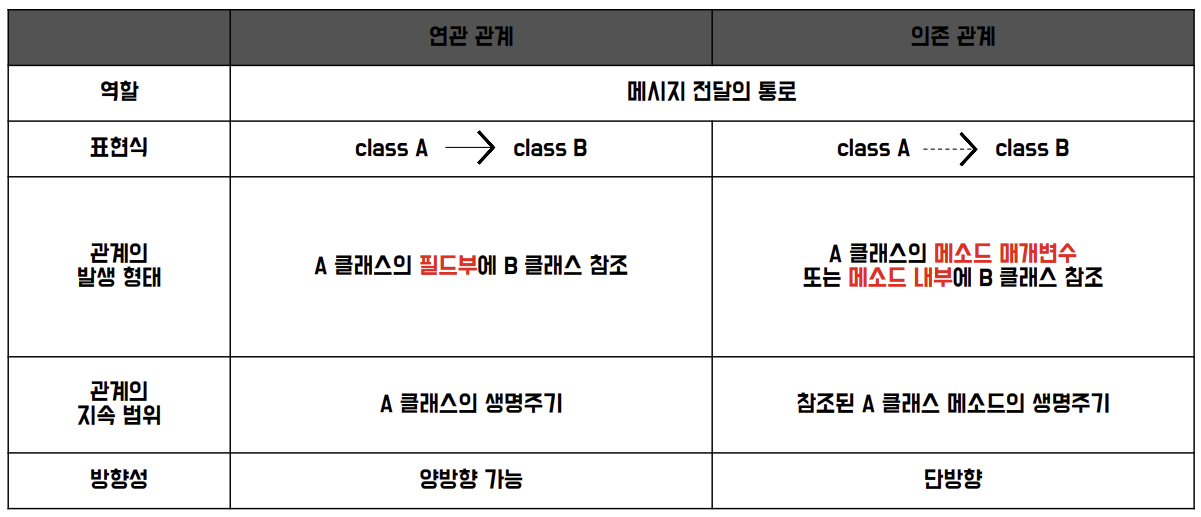 - 클래스 간의 관련성을 뜻하는 것으로 메시지 전달의 통로 역할