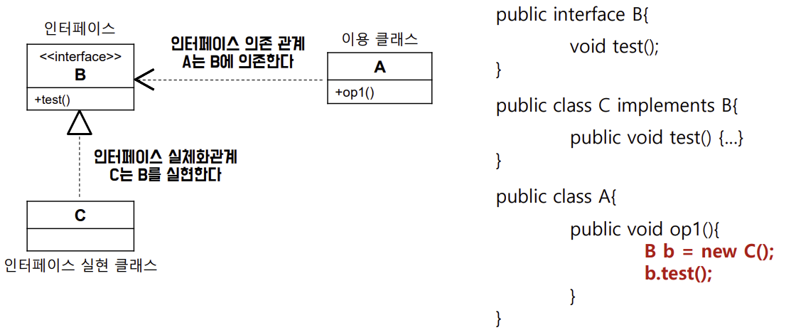 - 이용자는 의존 관계를 통해서 제공자의 연산을 호출