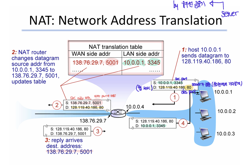 - 라우터에서 나갈 때 (src 사설주소->범용주소)