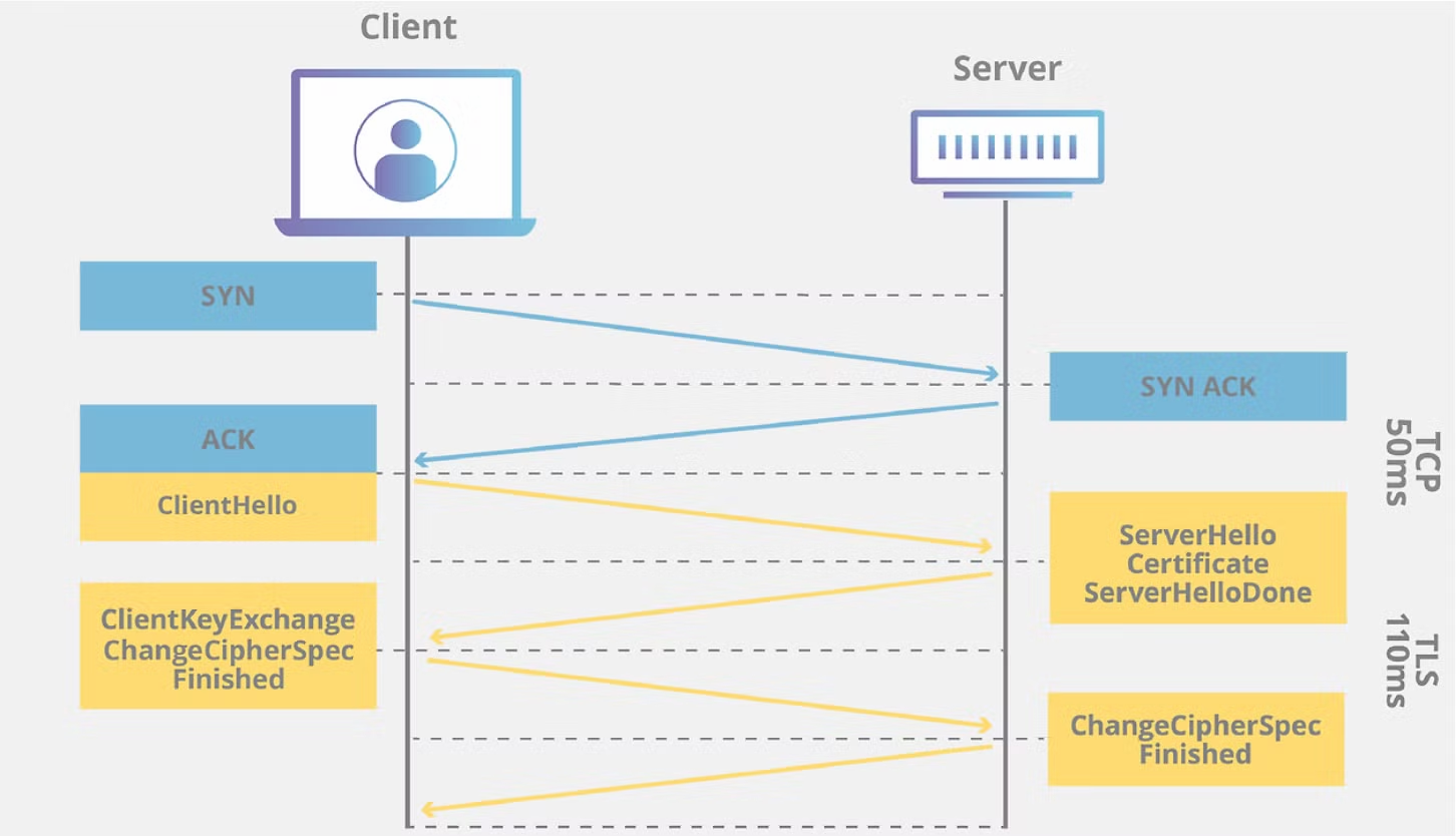- TCP layer의 3-way handshake + SSL Handshake