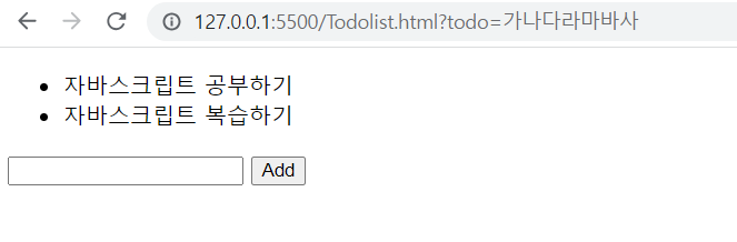const text = $form.querySelector('input[name=todo]').value // form에 입력된 값이 저장된다.