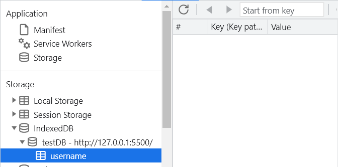 let objectStore = db.createObjectStore("username", {keyPath : "id"})