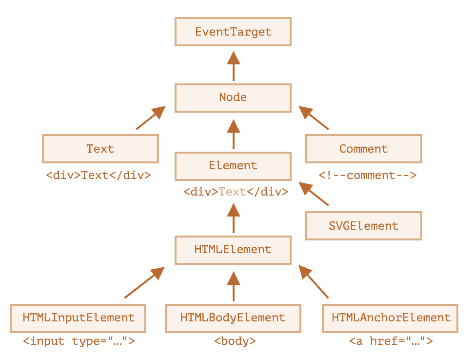 타입스크립트에서는 DOM 엘리먼트의 계층 구조를 파악하기 용이하다. Element와, EventTarget에 달려 있는 Node의 구체적인 타입을 안다면 타입 오류를 디버깅 하기 쉽고 언제 타입 단얼을 사용해야 할지 알수 있다.