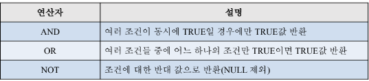 โ BETWEEN AND : ๋น๊ตํ๋ ค๋ ๊ฐ์ด ์ง์ ํ ๋ฒ์์ ํฌํจ๋๋ฉด TRUE๋ฅผ ๋ฆฌํดํ๋ ์ฐ์ฐ์๋ก