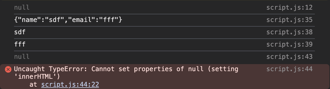 (참고: 콘솔 중간의 객체는 스크린샷 찍을 때 코드에서 지워서, 위아래 null 값이 첫번째 사진의 결과)