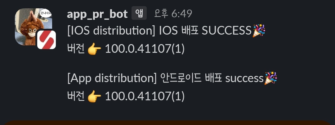 "text": "[App distribution] 안드로이드 배포 '"${STATUS}"''"${EMOJI}"'\n버전 👉 '"${VERSION}"'"