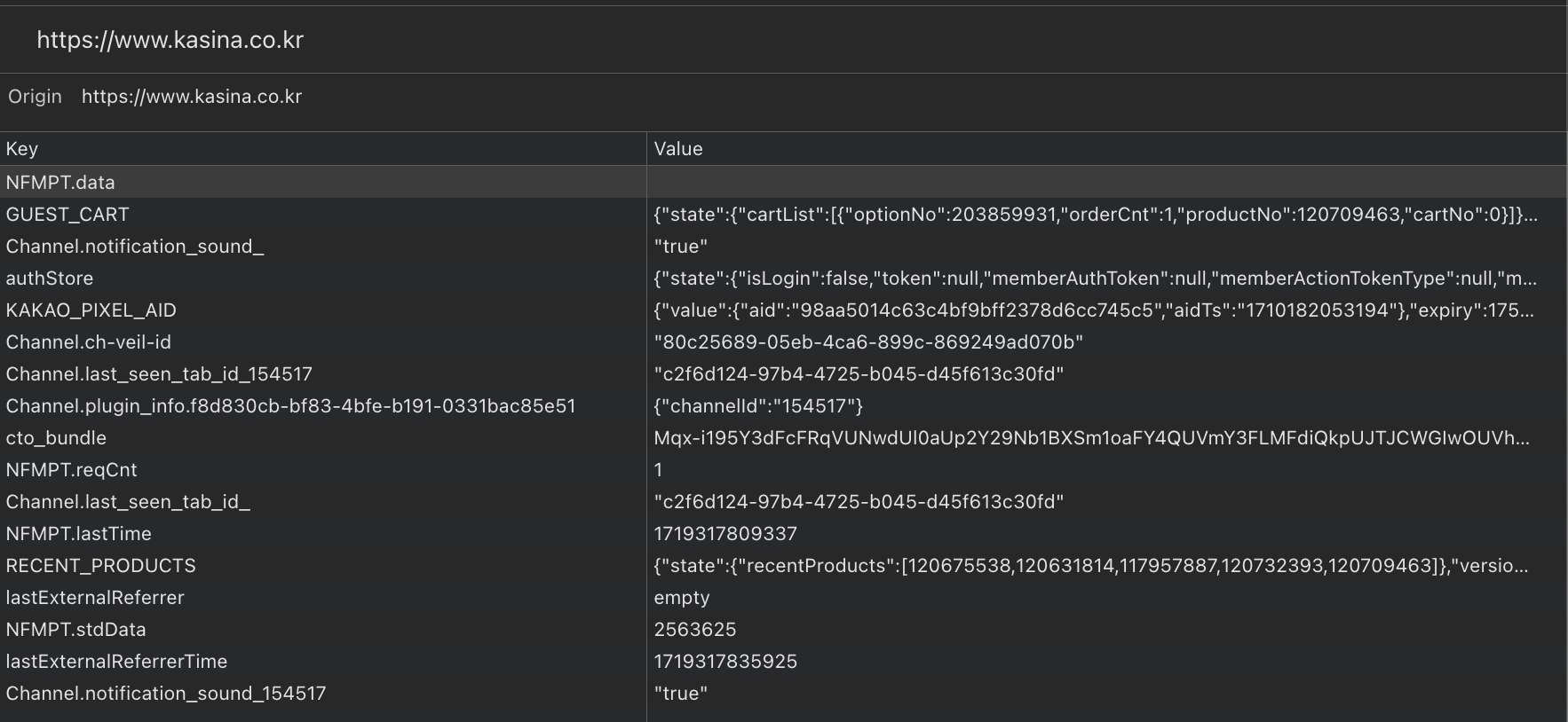 이 사이트는 로컬 스토리지를 이용해 로그인을 하지 않아도 사용자가 장바구니에 담아 놓은 상품을 유지시키고 있었다.
