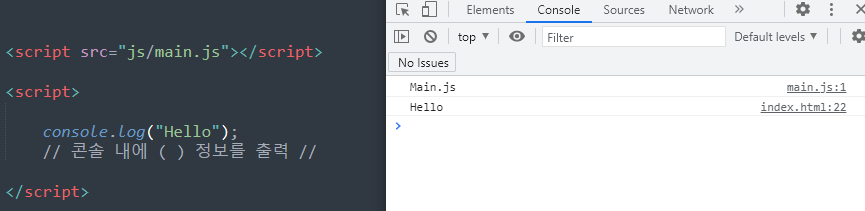 6. html에 JS 파일을 두 가지 이상 연동시킬 경우, 한 파일에서 만들어놓은 변수와 함수는 다른 파일에서도 호출 가능함 -> 이름의 중복 피할 것