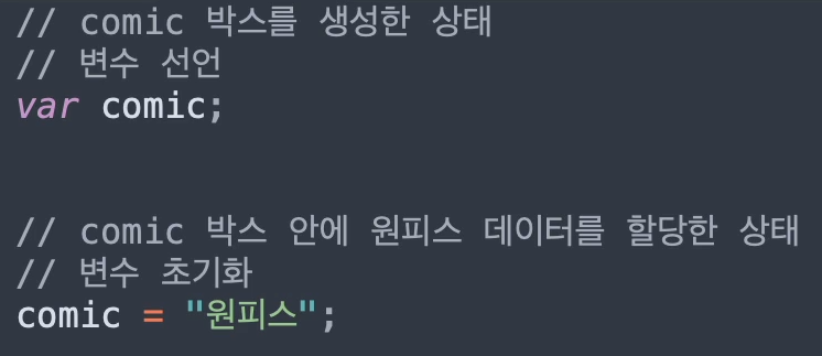 -변수라는 박스 안에 데이터를 담을 수 있으며 '변수명'이란 박스가 어떤 박스인지 표시하는 개념