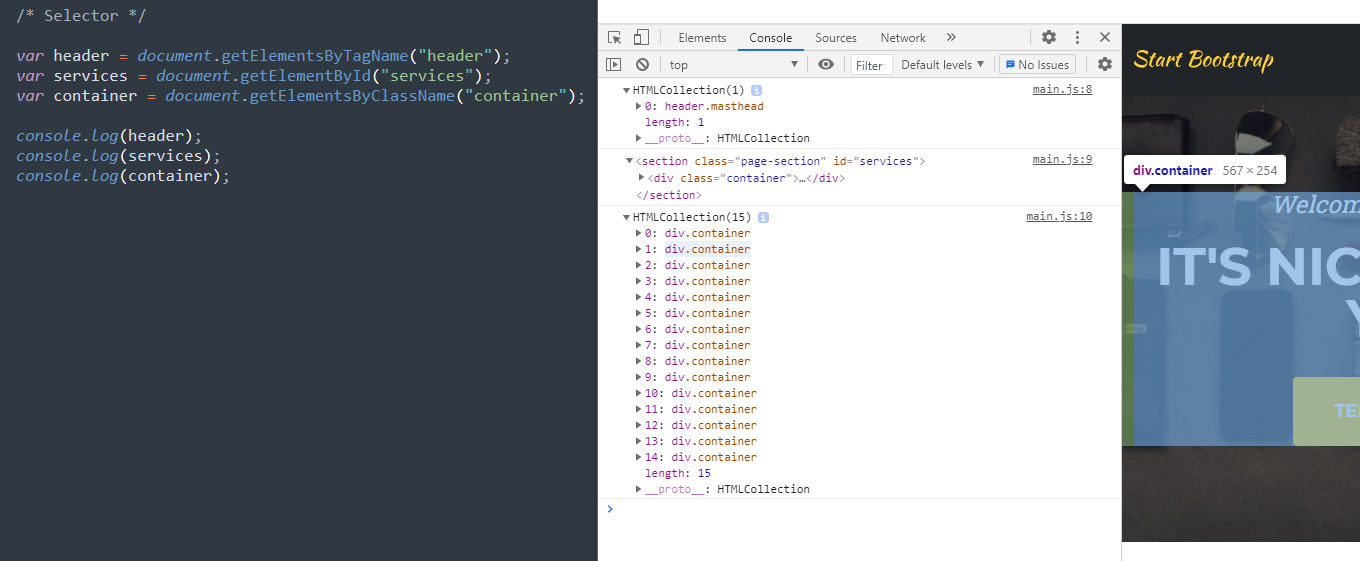 // // getElement's' -> 콘솔에서 HTML콜렉션으로 보임 -> 배열 형태 = 유사배열