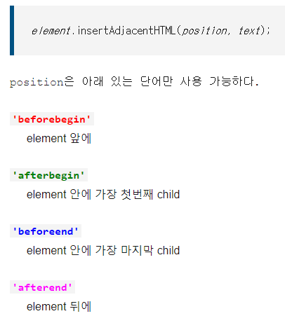 내가 원하는 위치에 값을 삽입하기: insertAdjacentHTML();