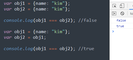 // 참조타입이라는 점을 잊지말고 같은 주소를 가진 인수를 주어야 함