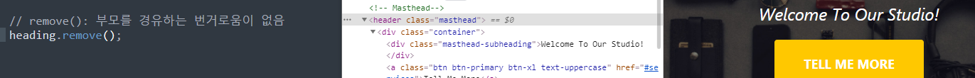 // // remove(): 부모를 경유하는 번거로움이 없음