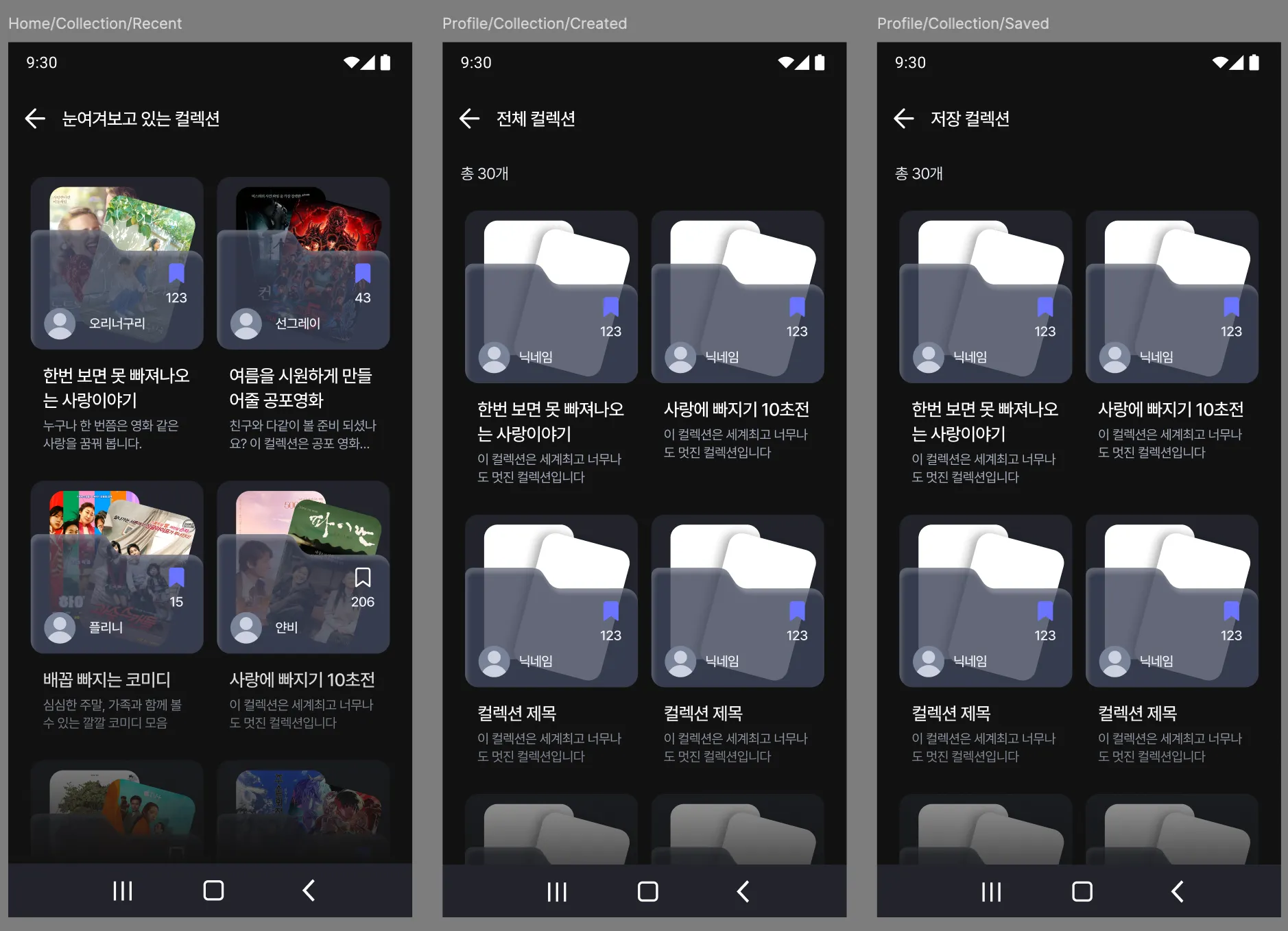 앞으로 Profile과 CollectionList가 서로 UI가 달라질 수 있겠지만, 현재 단계에서는 충분히 통합해서 사용할만하다고 생각했고(뷰모델이랑 스크린 또 만들기 귀찮잖어~) 그래서 분기랑 네비게이션 관리를 열심히 해봤습니다.