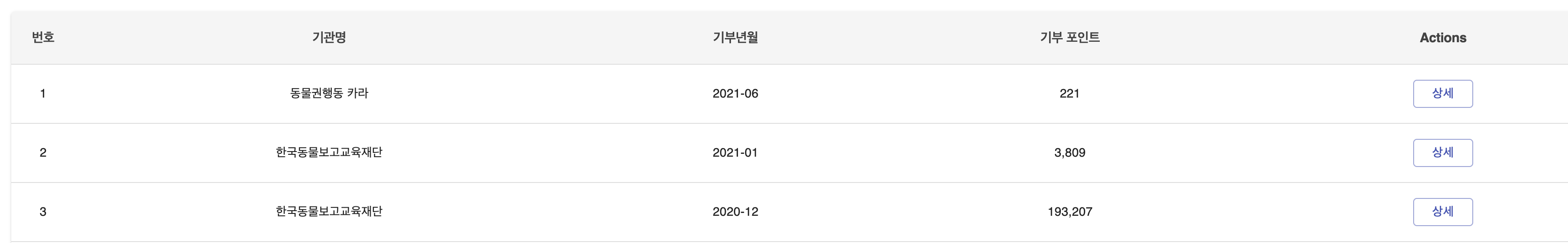 yearmonth(기부년월) title(기관명) point(기부 포인트) props로 전달