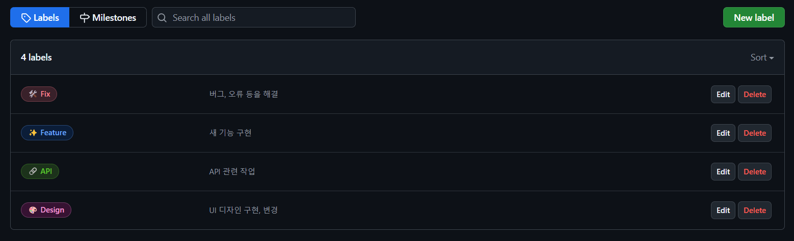 추가로 이슈에 함께 사용할 라벨도 만들어준다