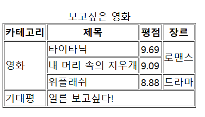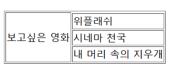표의 셀을 rowspan과 colspan 속성을 사용해서 합칠 수 있다