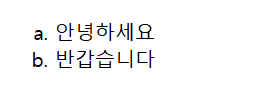 각 항목 앞에는 순서를 나타내는 숫자나 기호가 나타난다