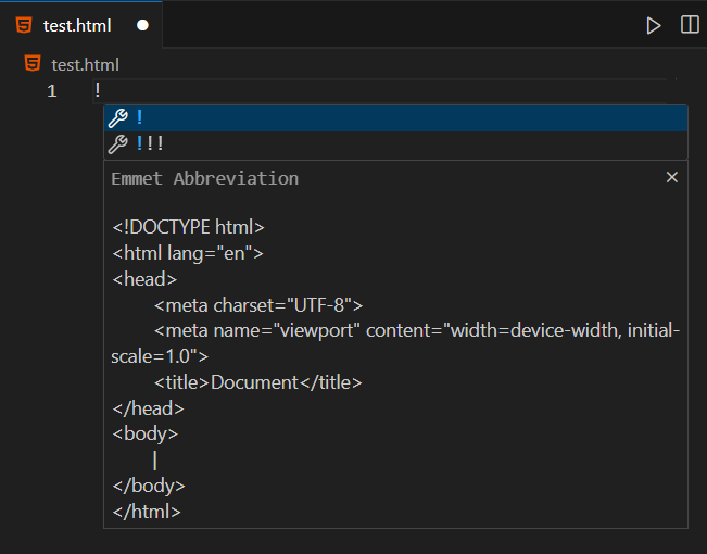 html 파일에서 !를 입력하면 emmet이 나타나서 엔터를 누르면 바로 아래의 구조를 확인할 수 있다