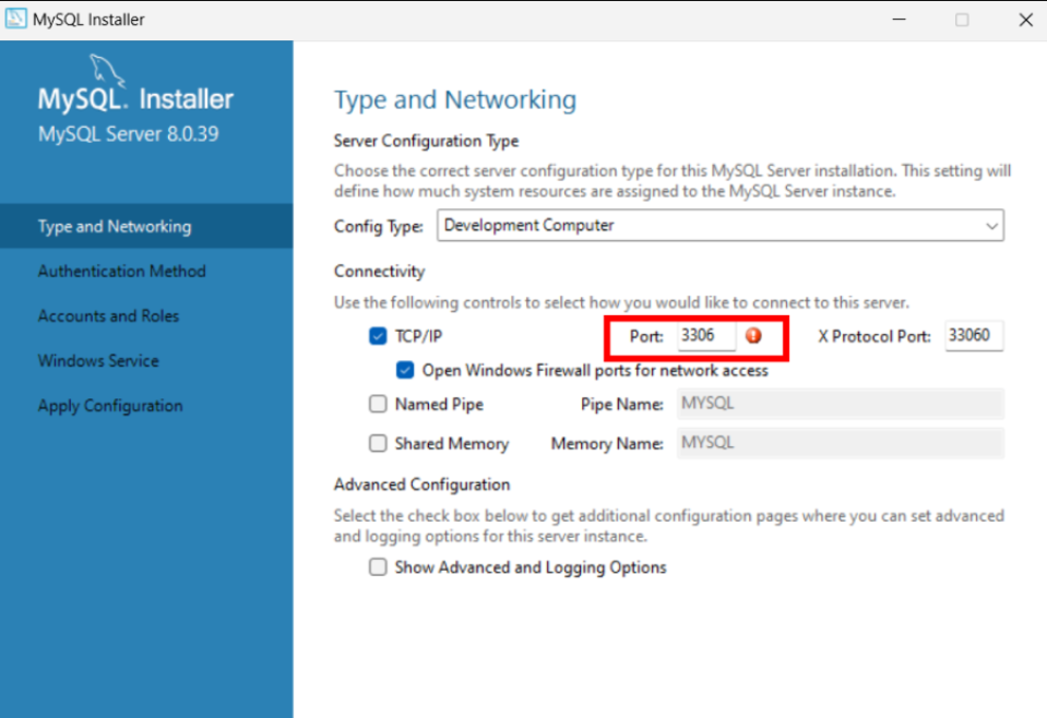 화면을 자세히 보니 3306번 포트 옆에 빨간 느낌표 아이콘이 있었고 마우스를 가져다대보니 3306번 포트가 이미 사용중이라는 문구가 있었다 전에도 3306번 포트가 이미 사용중이었어서 제거한 후 다시 설치를 이어갔던 기억이 떠올랐다