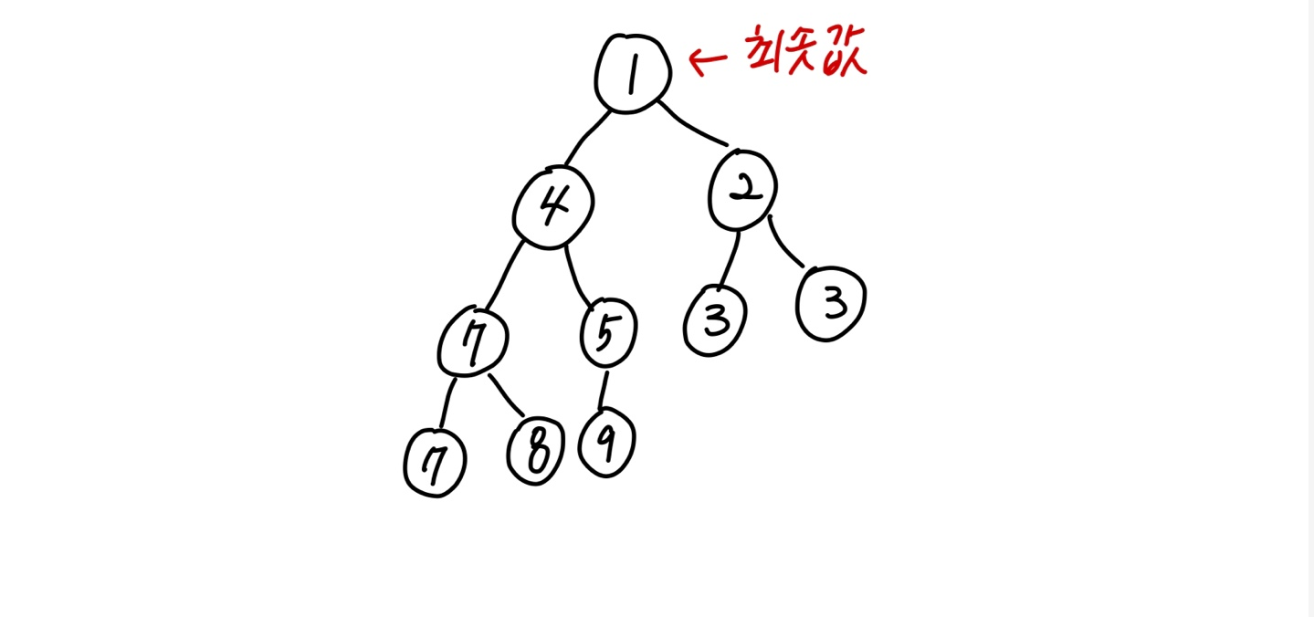 - 부모 노드의 키 값이 자식 노드의 키 값보다 작거나 같은 완전이진트리