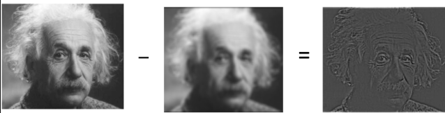LPF를 통해 고주파를 제거하고 이미지에 가우시안 필터를 convolve하면 블러링된 이미지를 얻을 수 있다 이때, 블러링된 이미지를 원래 이미지에서 뺴면 이미지의 디테일한 부분을 얻을 수 있다