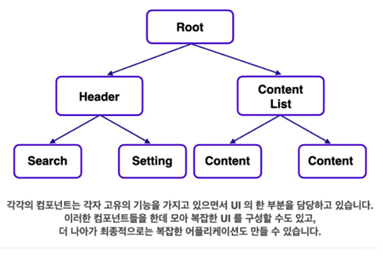 하나의 기능 구현을 위해 여러 종류의 코드를 묶어둔 컴포넌트를 기반으로 개발