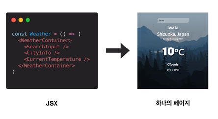 한 페이지를 보여주기 위해 HTML/CSS/JS로 나눠서 적기 보다는 하나의 파일에 명시적으로 작성할 수 있게 JSX를 활용한 선언형 프로그래밍 지향