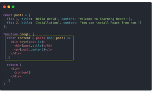 반복적으로 작성해야 하는 부분만 골라서 배열의 요소로 넣으면 React가 이를 인지하고 모든 요소를 렌더링