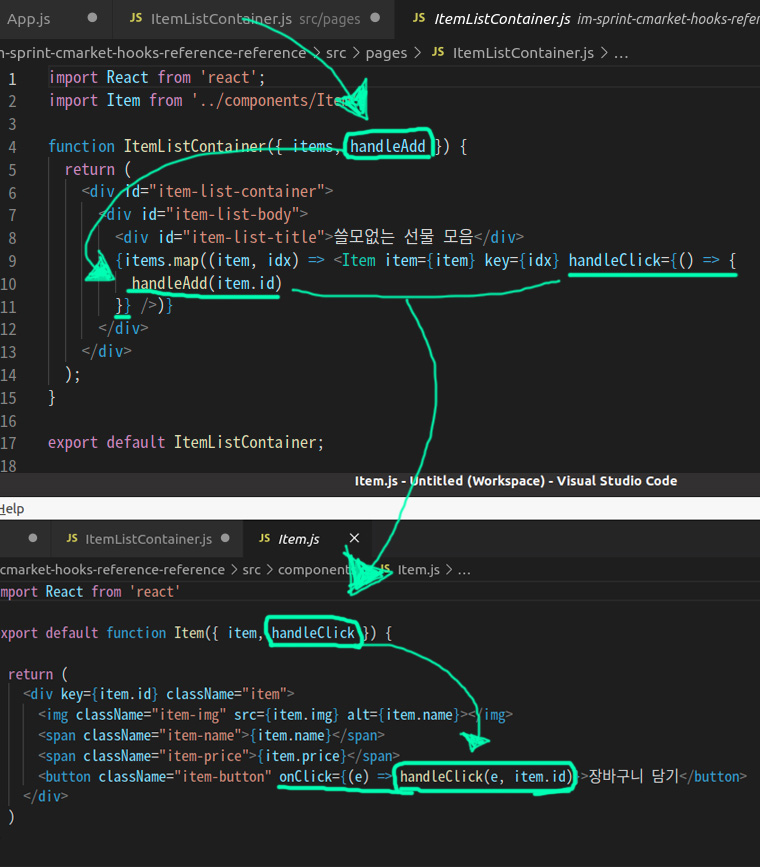 부모로부터 자식 컴포넌트에게 이벤트함수 props로 내려줄때 헷갈렸던 부분.