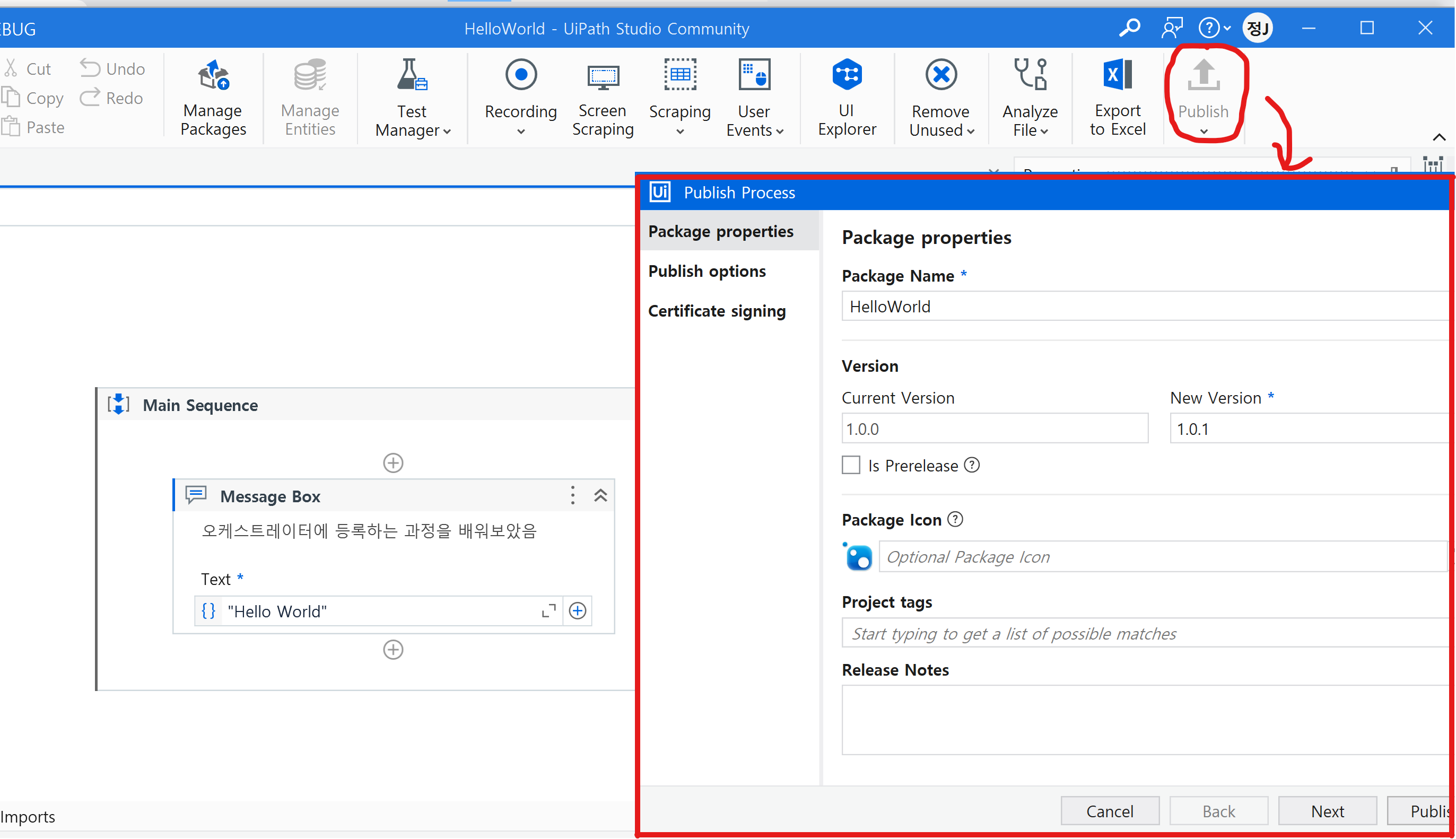 Publish를 누르게 되면 해당 Publish Process가 나오게 된다.