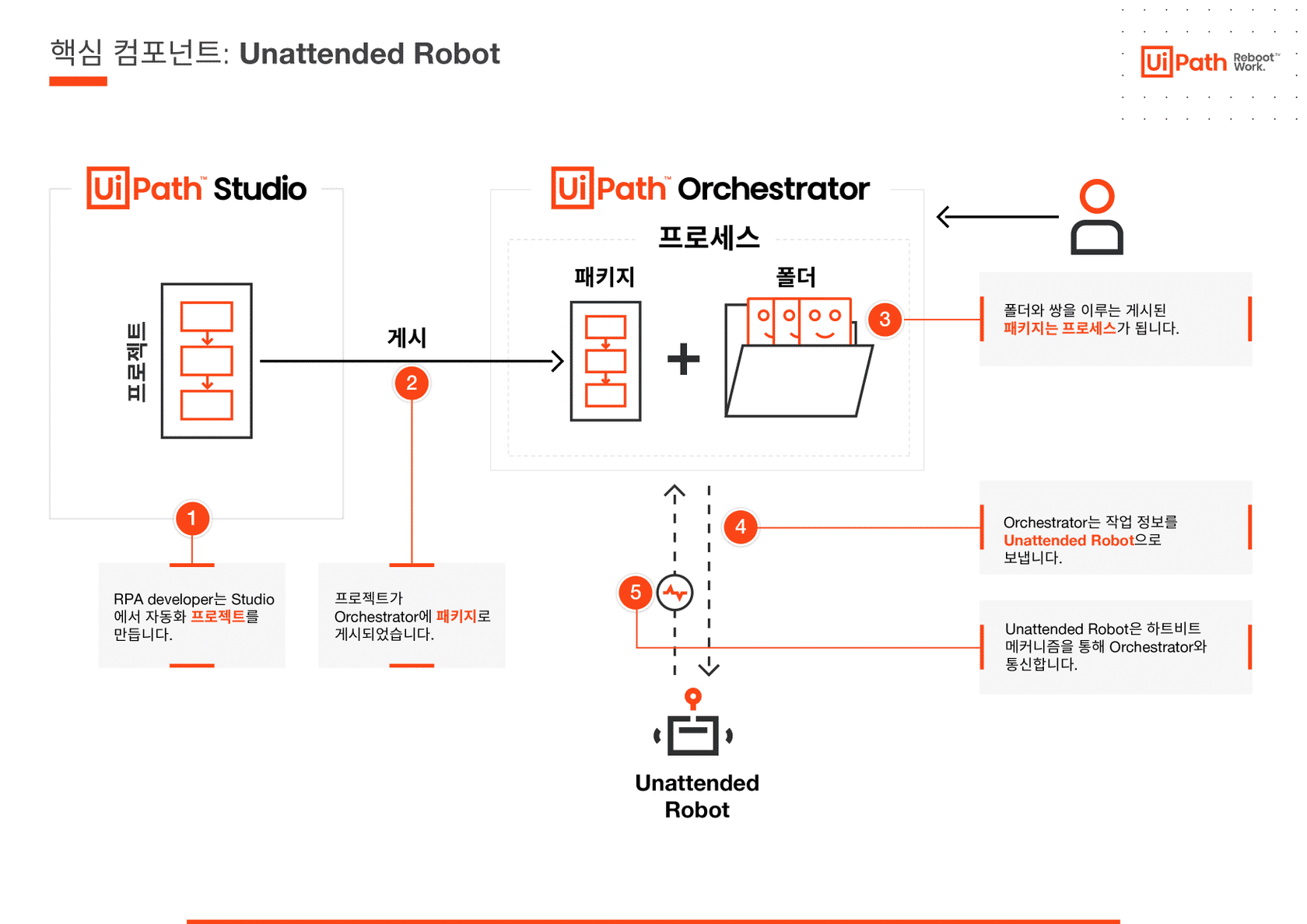 - 이런 작업이 처리되는 동안 Unattended robots은 다른 작업을 선택하여 작업을 계속할 수 있습니다.