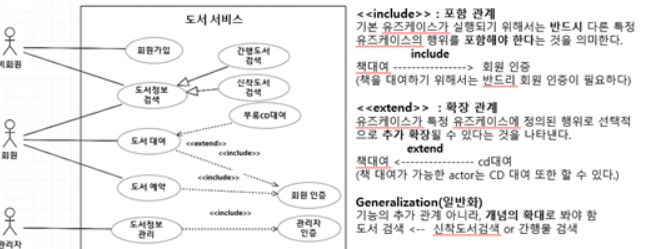 포함 관계 기본 유스테이스가 실행되기 위해서는 반드시 다른 특정 유스 테이스의 행위를 포함해야 한다는 것을 의미.