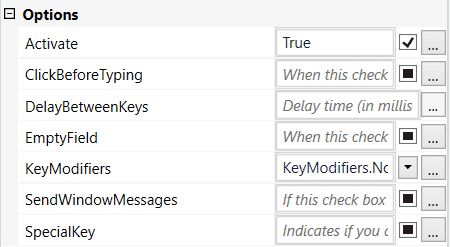 Type Into 액티비티는 지정된 UI 엘리먼트에 키 입력(텍스트)을 보냅니다. 특수 키도 지원합니다.