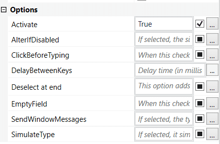 - SimulateType: 활성화된 경우 타겟 애플리케이션의 기술을 사용하여 형식 액션을 시뮬레이션합니다. 이 입력 메서드는 백그라운드에서 작동할 수 있습니다.