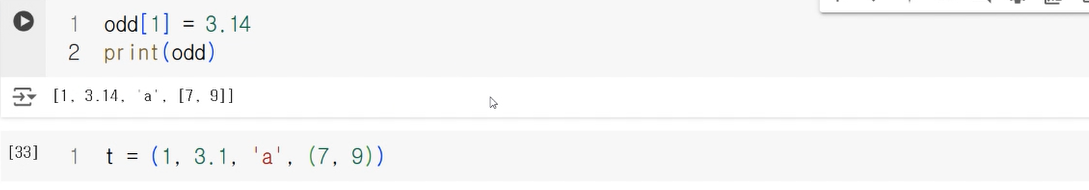 -tuple문도 list문과 동일하게 어떤 배열이든 가능하다
