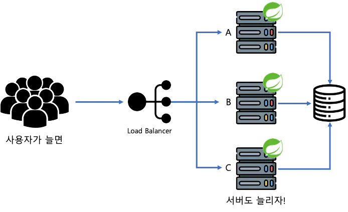 만약, 사용자가 늘어서 하나의 서버로는 사용자의 요청을 감당하기 어려워지면??
