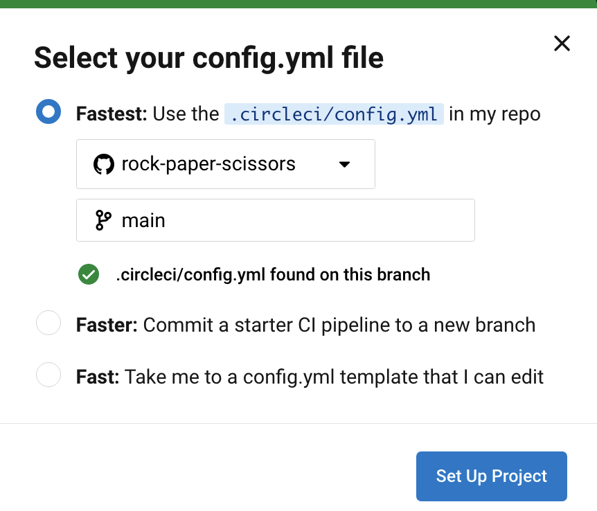 윗 단계에서 config.yml파일을 푸시해줬기 때문에 Fastest에서 자동으로 브랜치가 선택된다.