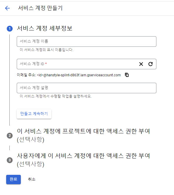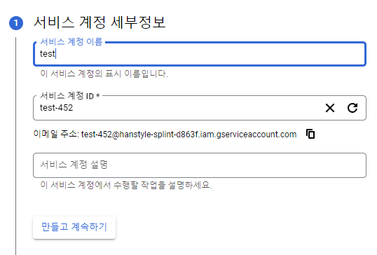 다른 것은 입력할 필요가 없고 서비스 계정 이름만 작성