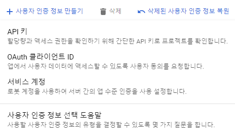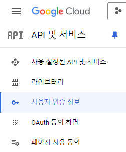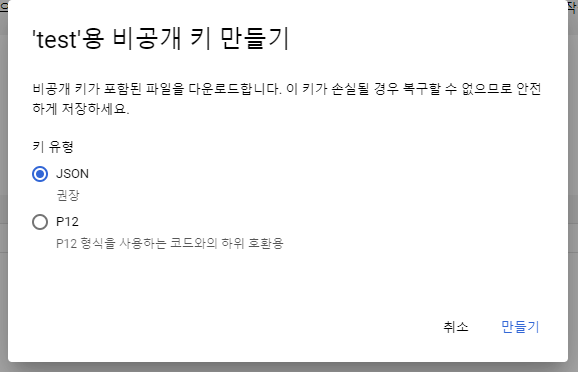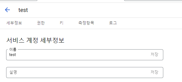 +사용자 인증 정보 만들기 에서 서비스 계정에 접근