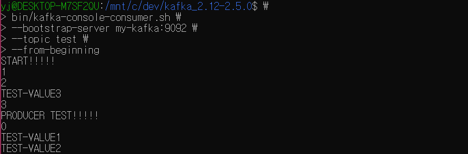 from-beginning 옵션을 사용하면 토픽에 저장된 가장 처음 데이터부터 출력한다.